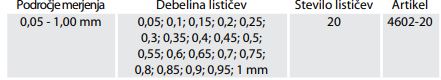 Ostalo: Merilni lističi, dolžina 100mm, 0.05-1.00mm, 20kos Na vrh